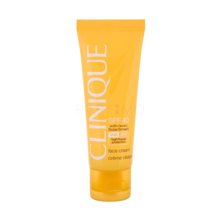 Clinique SPF40 Face Cream è una formula vellutata con tecnologia SolarSmart che fornisce protezione solare e rinnovamento senza oli. Una miscela di filtri minerali e tradizionali UVA/UVB e la tecnologia SolarSmart proteggono la pelle dai danni del sole che possono causare linee e rughe.