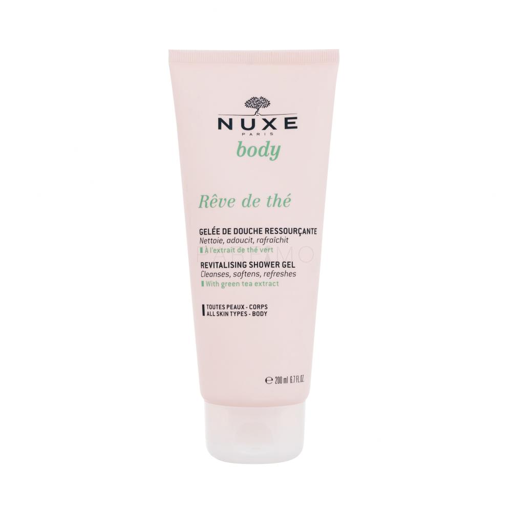 NUXE Reve de Thé Revitalising Shower Gel è un gel doccia ultrasensoriale ed è un'armonia da sogno tra una base detergente a base di erbe a base di olio di cocco ed estratto di tè verde.